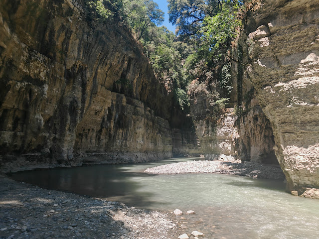 At this time of year the water levels are too low to do rafting, so instead they run guided trekking tours through the canyon. You don't need hiking boots though... you need a life jacket for this hike!